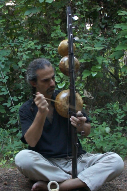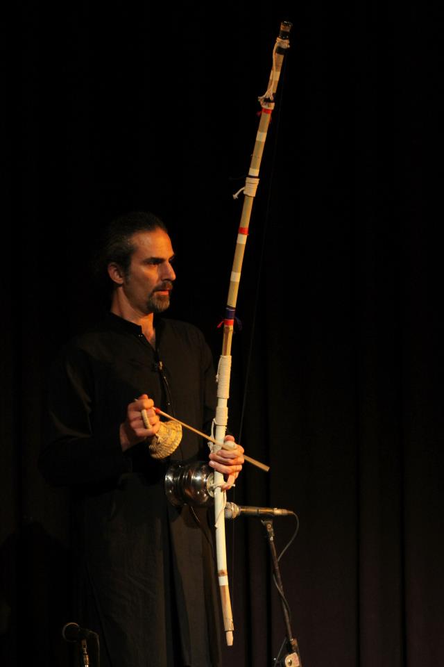 The idea to create the instrument which I called Axis came to my mind after playing the berimbau and appreciating its power to literally shake mind and heart. My first berimbau was a gift of my cousin who got it made for me by a maestro of Salvator de Bahia. I started playing it freely and soon got immediately deeply connected with it; I felt at ease with it as I had been playing it since many years. At the same time I started a research on the various typologies of musical bows across the world with a particular attention to the African ones.