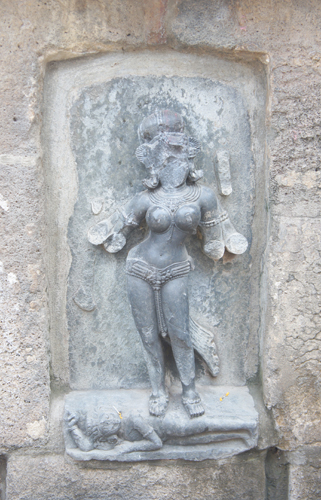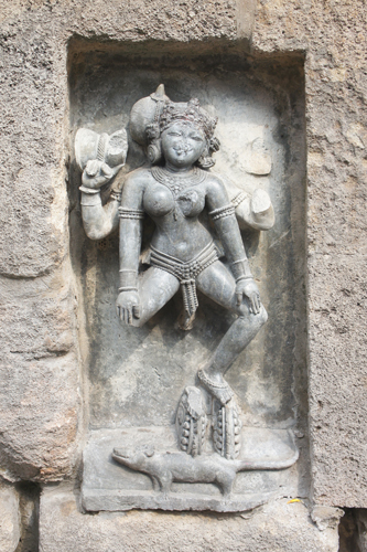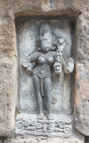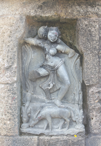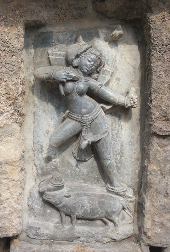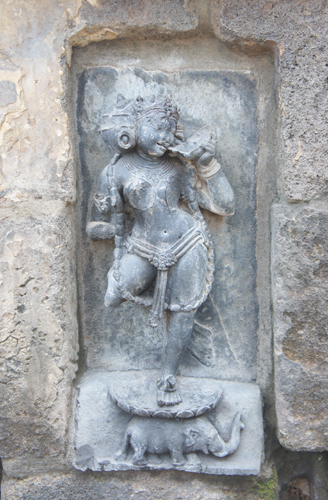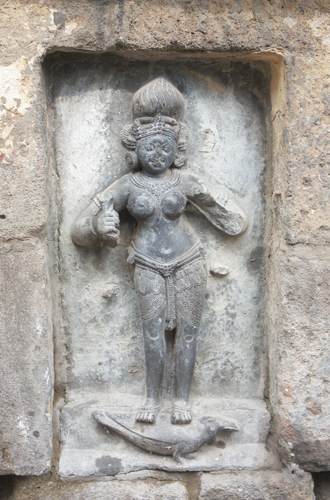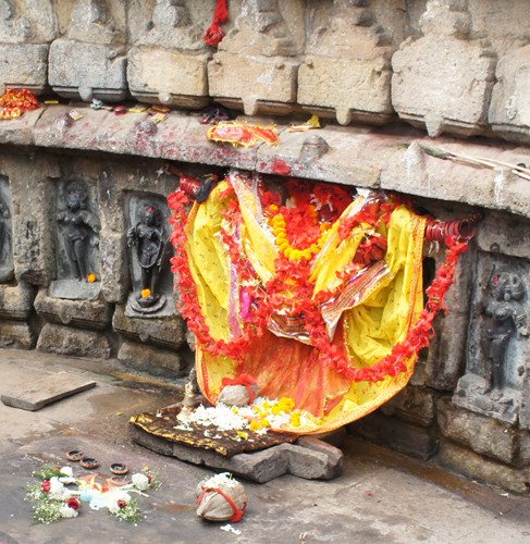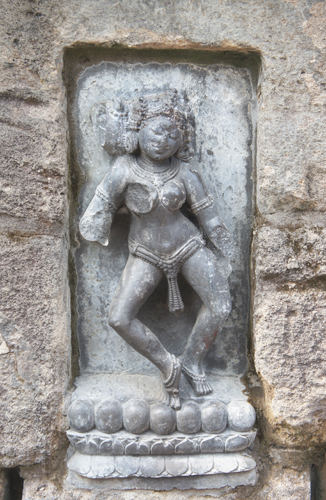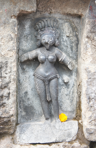 “Di clorite scura, scolpite lungo il bordo inferiore del muro interno, le Yogini di Hirapur sono immortalate ognuna con simboli ed attributi specifici”
