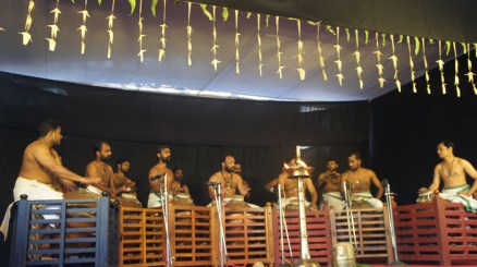 The morning session started at 9.00 a.m. with Mizhavu drums. Powerful beats of drums awakened the daily peaceful atmosphere of Thrissur town and our sleepy morning mood.