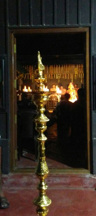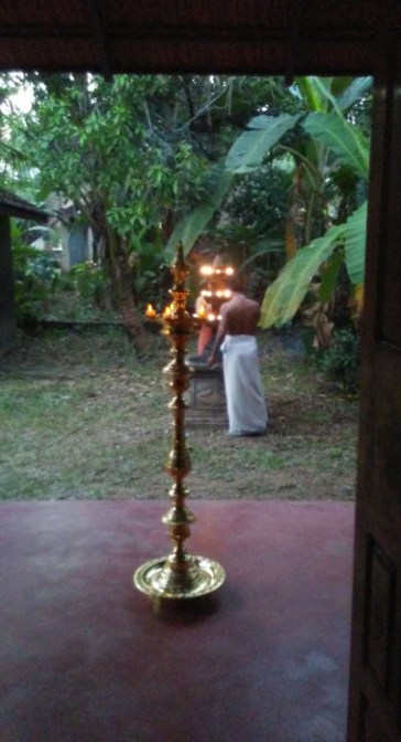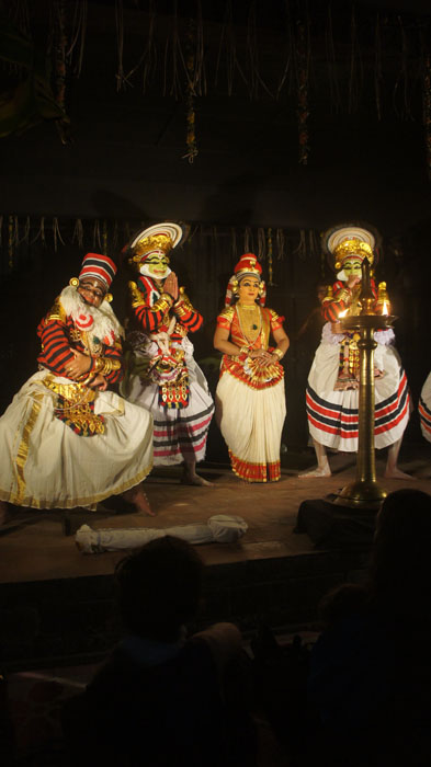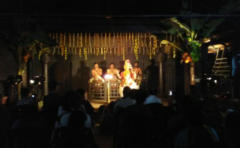 First evening at the Nepathya’s Kuthambalam. The theatres included into the premises of temples of Kerala, in which stage the Kutiyattam was performed, were called Kuthambalam