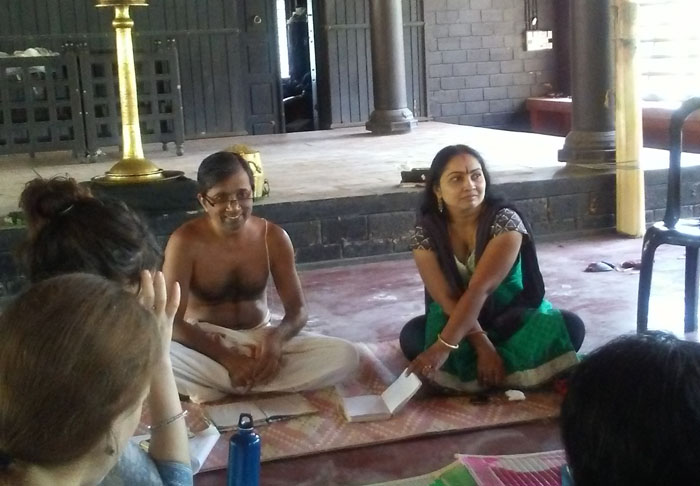 Morning sessions were dedicated to Abhinaya and Sanskrit textes. A nourishing moment to deepen the understanding of the vocabulary and esthetics of Kutiyattam. Professors from different Univesities, scholars, researchers, artistis gathered around the intrigate language of one of the finest art forms of India.