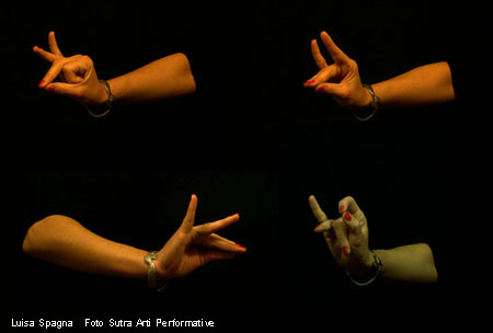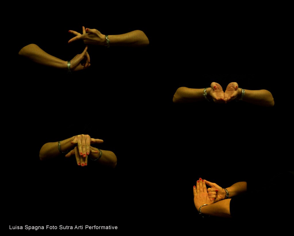 Una delle caratterisitche fondamentali nella danza classica indiana é il linguaggio delle mani – Hasta Mudra – sia come estensione estetica dei movimenti che come un vero e proprio linguaggio.