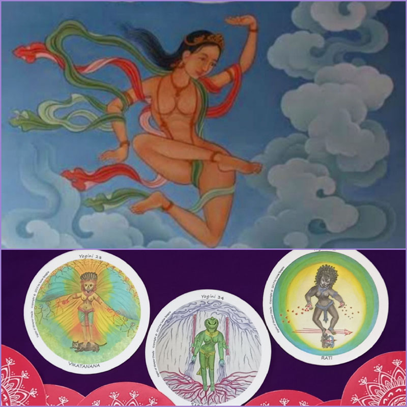 Lunedi 10 Ottobre riprendono gli incontri online Zoom della Luna Piena che si aprono con la meditazione danzata della pratica delle Cinque Dakini e proseguono con la pratica delle carte oracolari Yogini of Hirapur Oracle progettate, disegnate e commentate da Luisa Spagna.