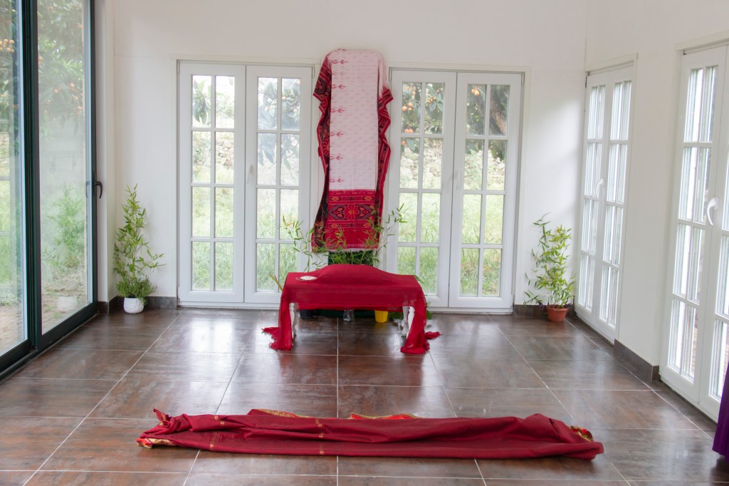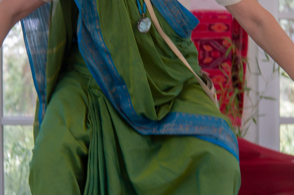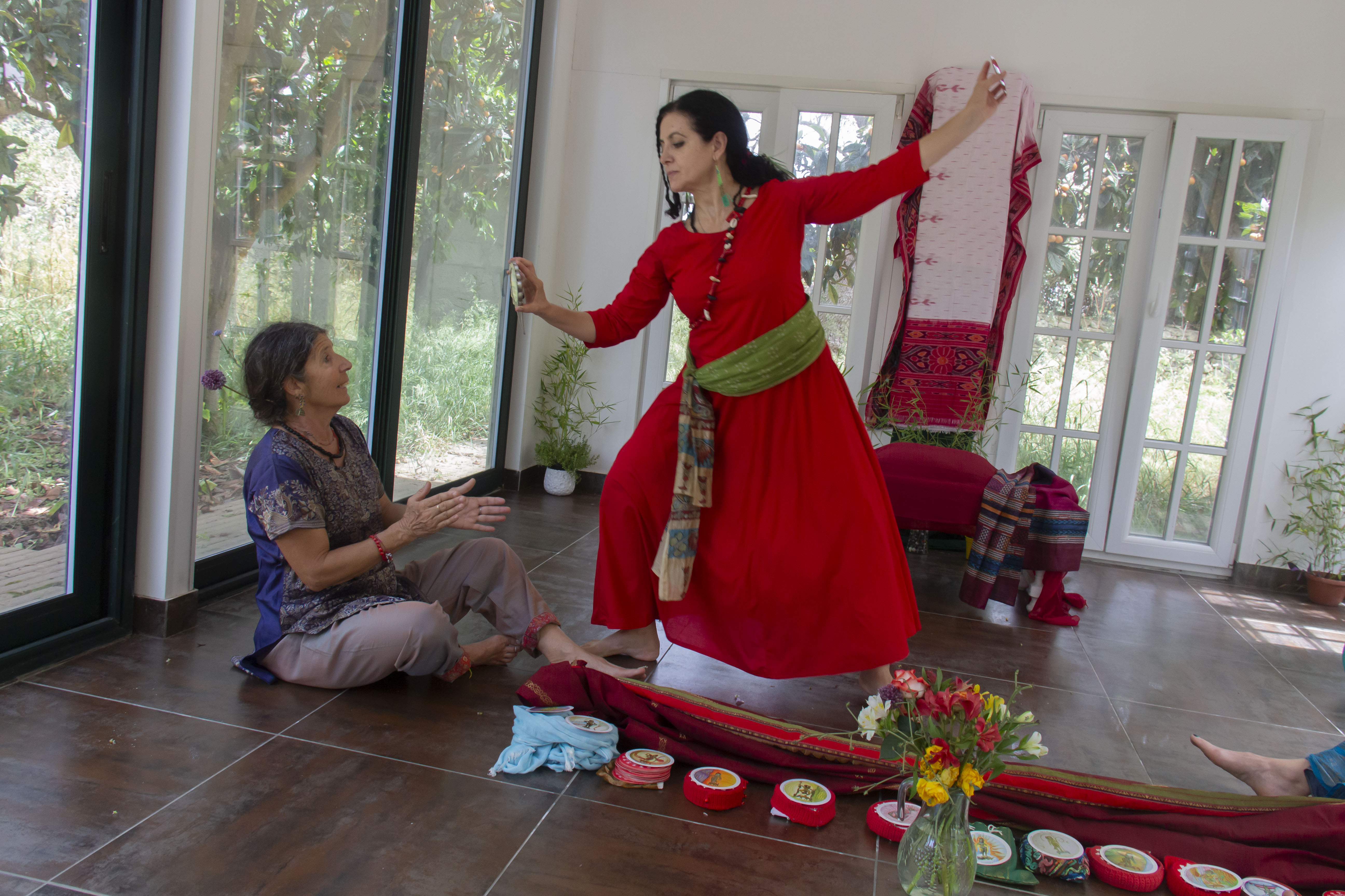 Sono una praticante del teatro-danza Nangiarkoothu, il ruolo femminile dell’antico teatro-danza sanscrito Kutiyattam, dove uno degli oggetti di scena che piú mi affascina è la tenda che separa la scena teatrale dagli spettatori. Dietro la tenda i rituali iniziali sono tenuti nascosti alla vista dello spettatore. La tenda segna cosí il passaggio dal non manifesto alla manifestazione.