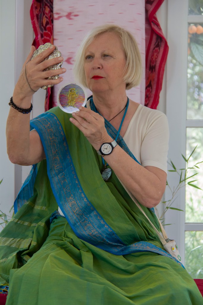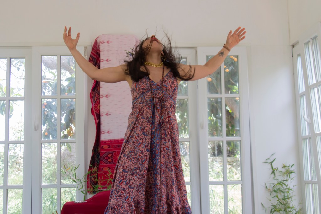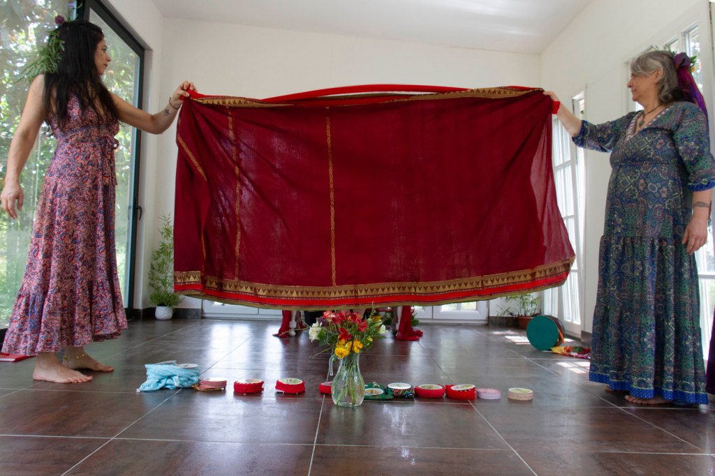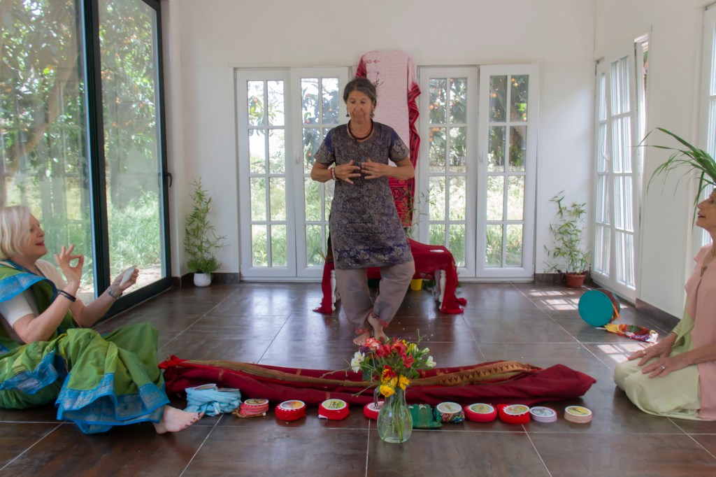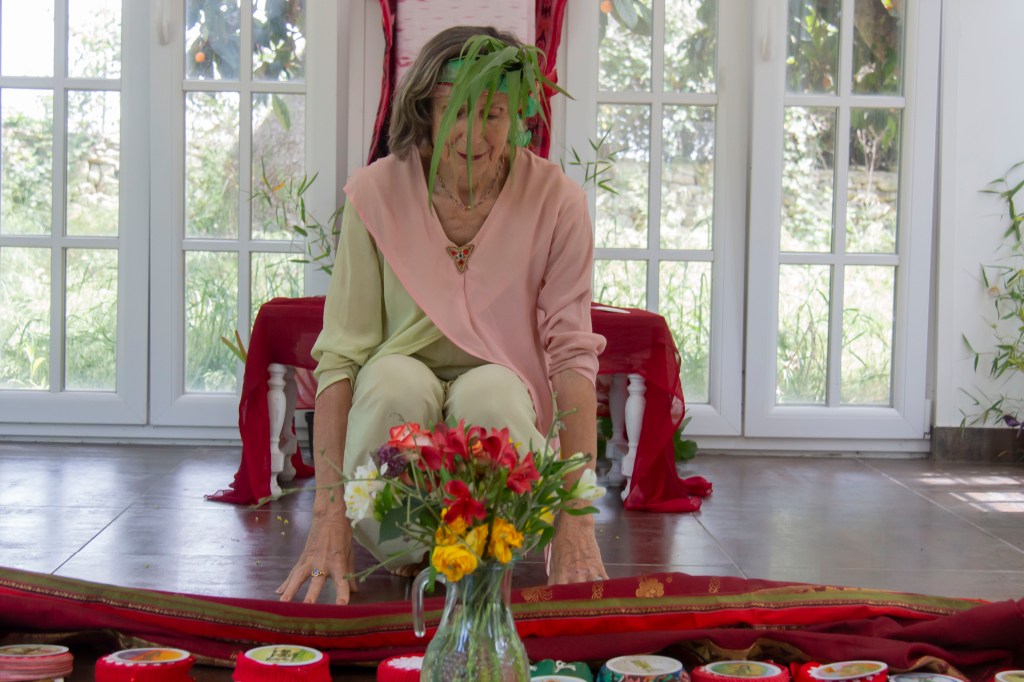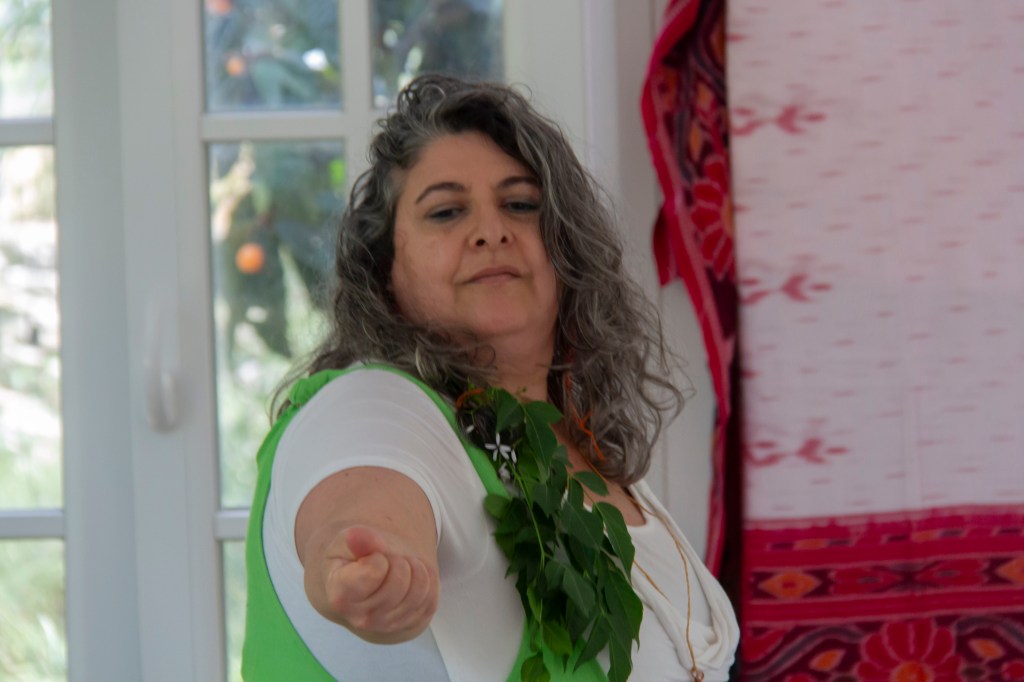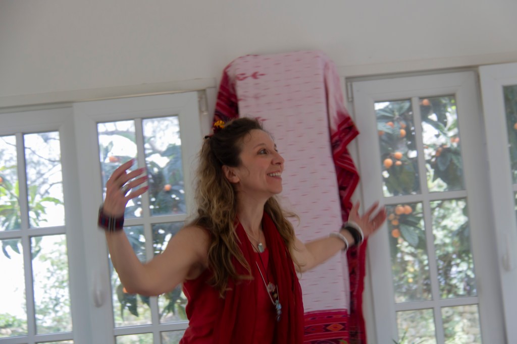 Specchiarsi e riconoscersi prima di manifestarsi all’esterno è stato un passaggio importante, iniziato con pratiche precedenti alla performance rituale oracolare finale. Ognuna delle performer-Yogini e’ stata accompagnata nel processo creativo e nella rappresentazione da due ‘aiutanti’.