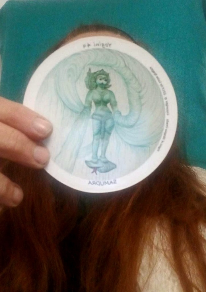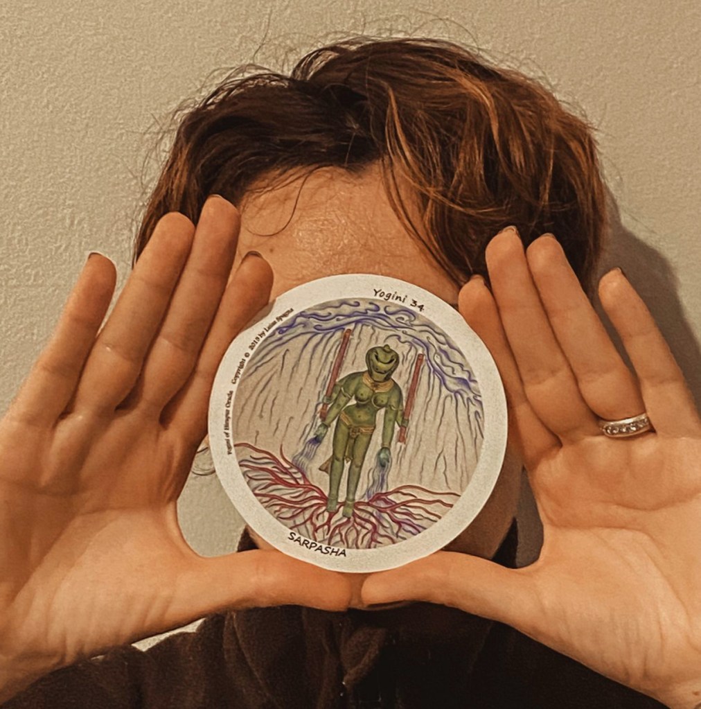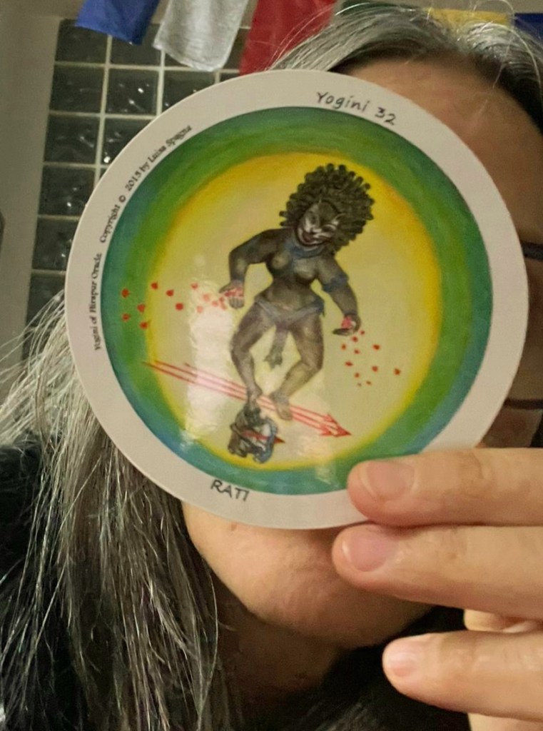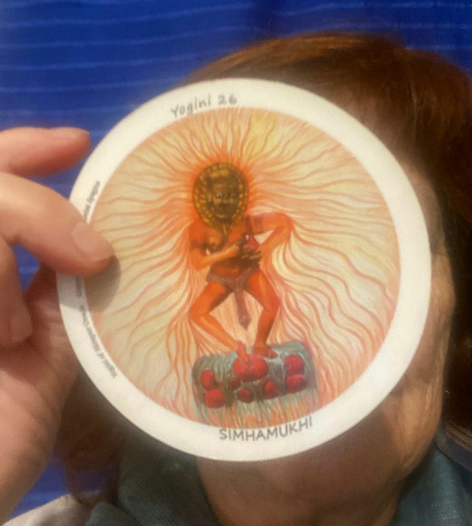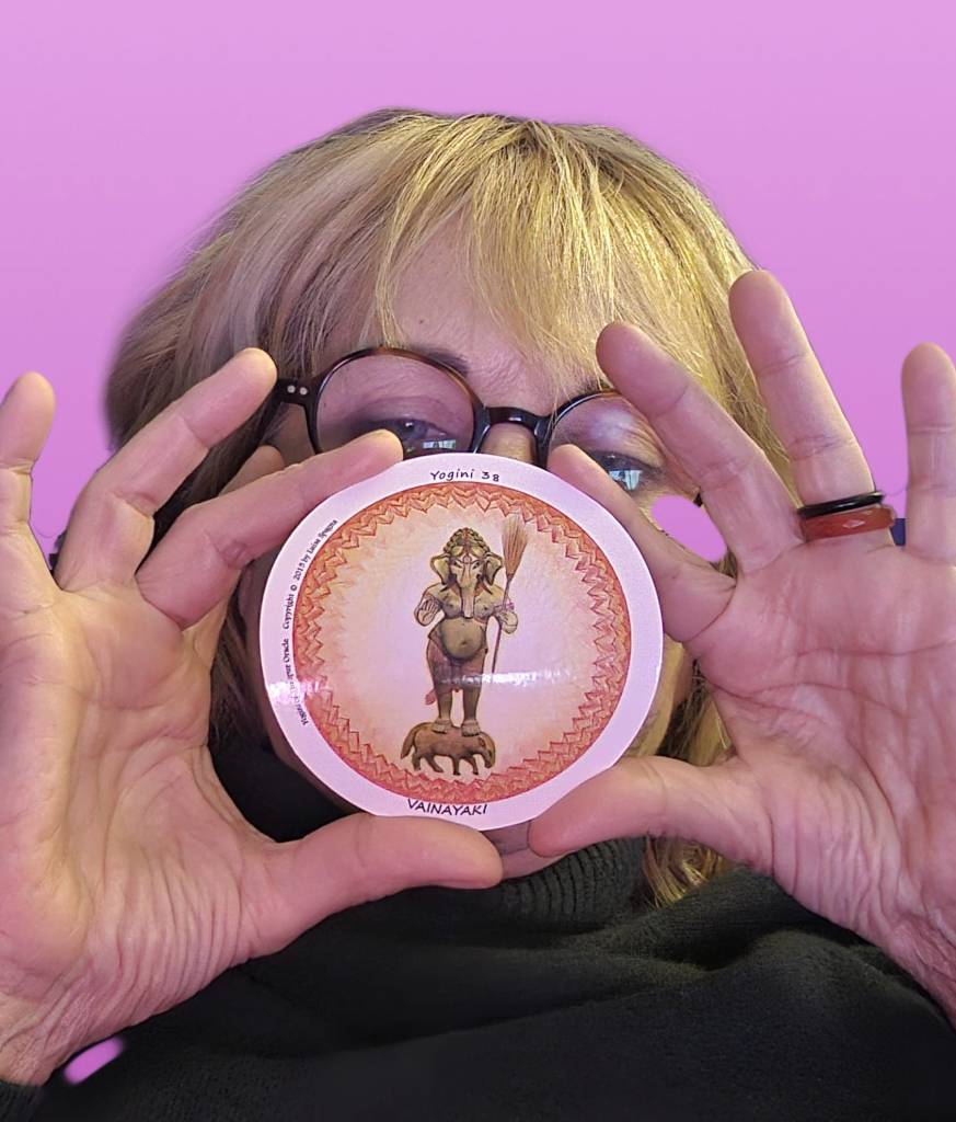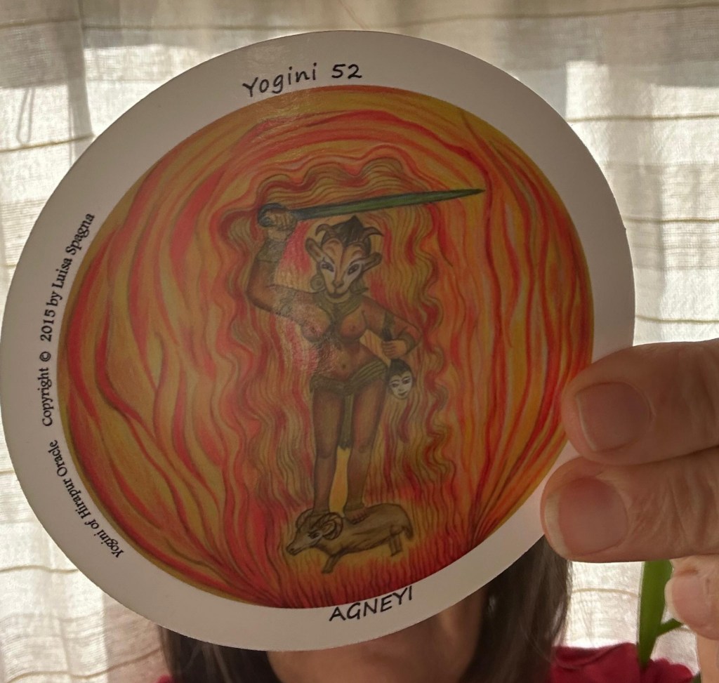 Nel mazzo di carte oracolari Yogini of Hirapur Oracle vi sono 15 Yogini Teriomorfe, dal volto di capra, cinghialessa, pesce, scimmia, orsa, serpentessa, cavalla, gatta, uccello rapace, leonessa, elefantessa.