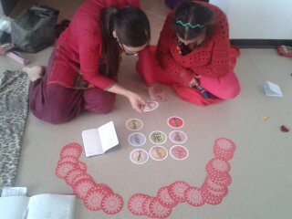 It is a set of oracle cards, round like the Motherpeace, crafted after the round cards of India where Luisa has studied and investigated the remarkable Yogini Temple at Hirapur (in Orissa) for several years. Even before that, she studied the classical dances of India, performing and sharing her gifts in a variety of ways over many years. In the Dakini courses that I have taught in Italy for the last ten years, Luisa has created a set of simple, beautiful mudras to accompany the invocations I created as my adaptation from Tibetan Buddhist practices.